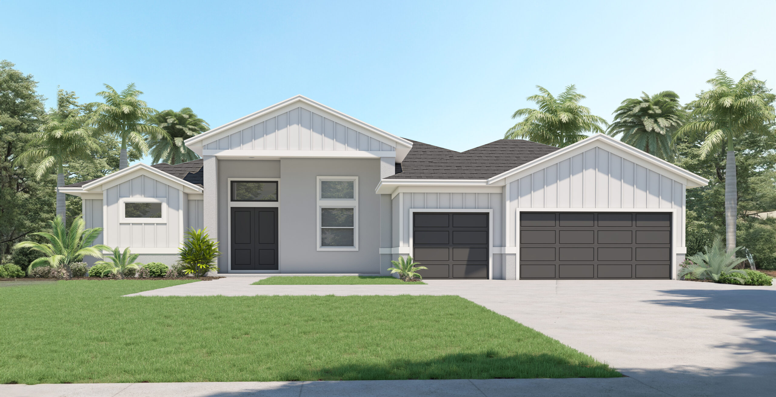 Transitional style blends timeless comfort with modern simplicity, creating a look that feels balanced, inviting, and easy to personalize. It’s ideal for anyone moving into a larger home or merging different design preferences into one cohesive space. Our updated transitional elevation features gable roof accents and a clean board-and-batten look crafted in stucco, offering lasting beauty, durability, and a fresh modern edge while still feeling warm and welcoming.